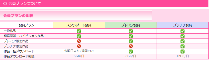 プラチナ会員の特典は、プレミア会員の特典に加えて、プラチナ限定作品の視聴ができるようになります。